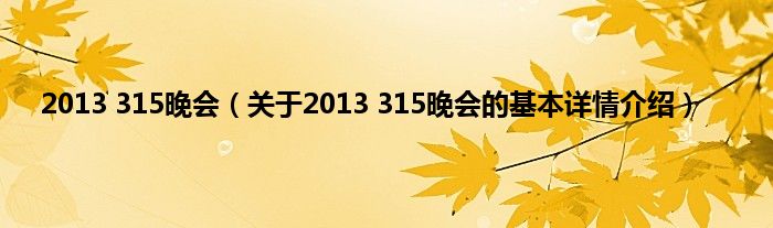 本文关于2013 315晚会的基本详情介绍就讲解完毕,希望对大家有所帮助。