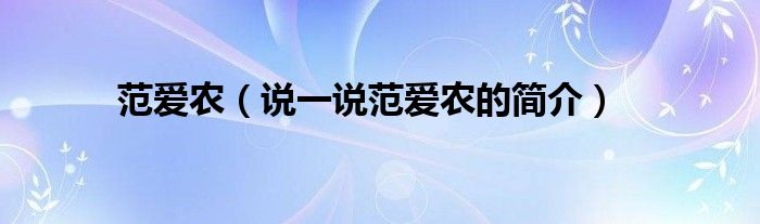 夏弥来为大家解答以下的问题,范爱农,说一说范爱农的简介,现在让我们一起来看看吧!