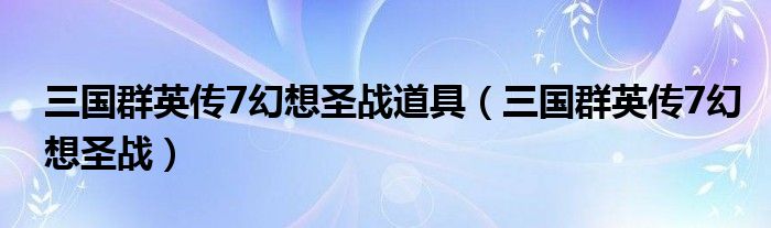三国群英传7幻想圣战道具(三国群英传7幻想圣战)