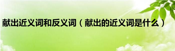 大家好,小晋来为大家解答以下问题,关于献出近义词和反义词,献出的近义词是什么很多人还不知道,今天让我们一起来看看吧!