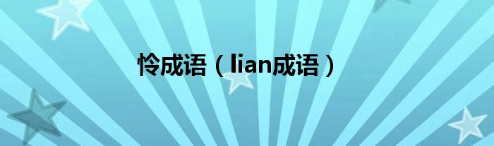 大家好,小晋来为大家解答以下问题,关于怜成语,lian成语很多人还不知道,今天让我们一起来看看吧!