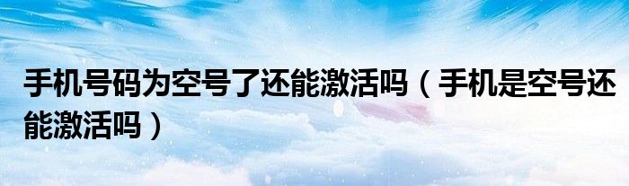 大家好,小晋来为大家解答以下问题,关于手机号码为空号了还能激活吗,手机是空号还能激活吗很多人还不知道,今天让我们一起来看看吧!