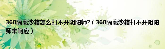 360隔离沙箱怎么打不开阴阳师?(360隔离沙箱打不开阴阳师未响应)