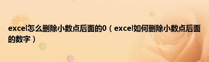 关于excel怎么删除小数点后面的0,excel如何删除小数点后面的数字这个很多人还不知道,今天菲菲来为大家解答以上的问题,现在让我们一起来看看吧!