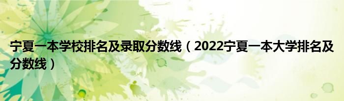 宁夏一本学校排名及录取分数线(2022宁夏一本大学排名及分数线)