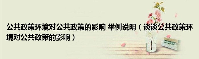 关于公共政策环境对公共政策的影响 举例说明,谈谈公共政策环境对公共政策的影响这个很多人还不知道,今天菲菲来为大家解答以上的问题,现在让我们一起来看看吧!