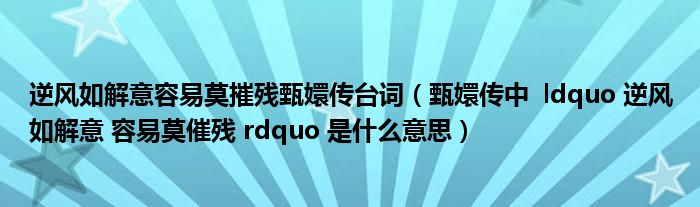 关于逆风如解意容易莫摧残甄嬛传台词,甄嬛传中 ldquo 逆风如解意 容易莫催残 rdquo 是什么意思这个很多人还不知道,今天菲菲来为大家解答以上的问题,现在让我们一起来看看吧!
