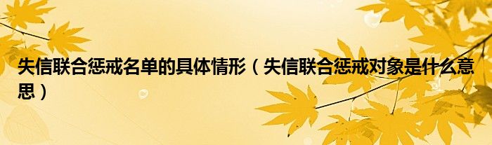 关于失信联合惩戒名单的具体情形,失信联合惩戒对象是什么意思这个很多人还不知道,今天菲菲来为大家解答以上的问题,现在让我们一起来看看吧!