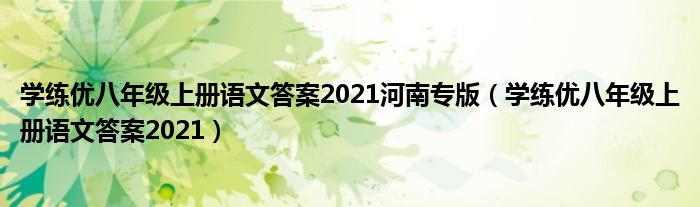 关于学练优八年级上册语文答案2021河南专版,学练优八年级上册语文答案2021这个很多人还不知道,今天菲菲来为大家解答以上的问题,现在让我们一起来看看吧!
