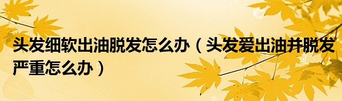 大家好,乐天来为大家解答以下的问题,头发细软出油脱发怎么办,头发爱出油并脱发严重怎么办很多人还不知道,现在让我们一起来看看吧!