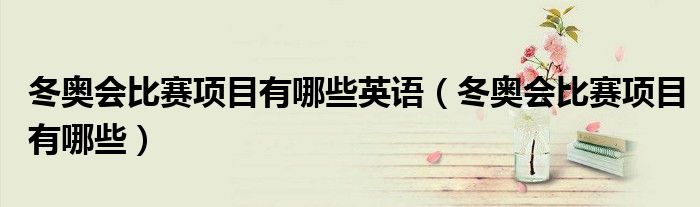 关于冬奥会比赛项目有哪些英语,冬奥会比赛项目有哪些这个很多人还不知道,今天菲菲来为大家解答以上的问题,现在让我们一起来看看吧!