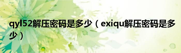 大家好,小联来为大家解答以上的问题。qyl52解压密码是多少,exiqu解压密码是多少这个很多人还不知道,现在让我们一起来看看吧!