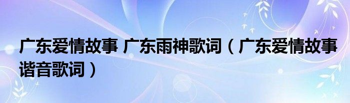 关于广东爱情故事 广东雨神歌词,广东爱情故事谐音歌词这个很多人还不知道,今天菲菲来为大家解答以上的问题,现在让我们一起来看看吧!