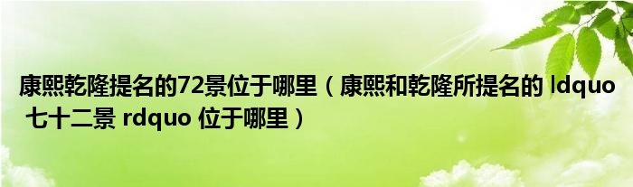 大家好,小联来为大家解答以上的问题。康熙乾隆提名的72景位于哪里,康熙和乾隆所提名的 ldquo 七十二景 rdquo 位于哪里这个很多人还不知道,现在让我们一起来看看吧!