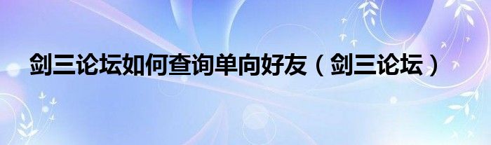 大家好,我是小科,我来为大家解答以上问题。剑三论坛如何查询单向好友,剑三论坛很多人还不知道,现在让我们一起来看看吧!