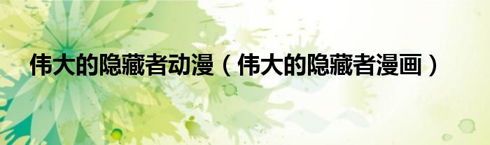 大家好,我是小科,我来为大家解答以上问题。伟大的隐藏者动漫,伟大的隐藏者漫画很多人还不知道,现在让我们一起来看看吧!