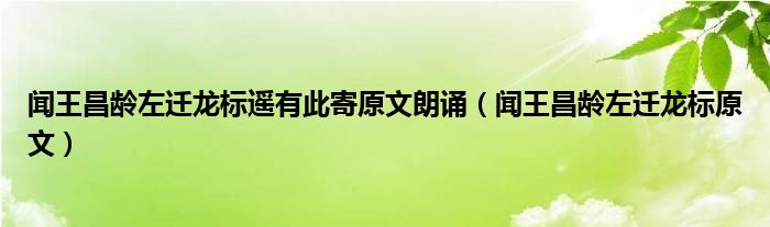 闻王昌龄左迁龙标遥有此寄原文朗诵(闻王昌龄左迁龙标原文)