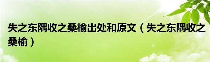 大家好,我是小科,我来为大家解答以上问题。失之东隅收之桑榆出处和原文,失之东隅收之桑榆很多人还不知道,现在让我们一起来看看吧!
