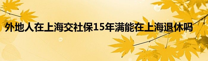 外地人在上海交社保15年满能在上海退休吗