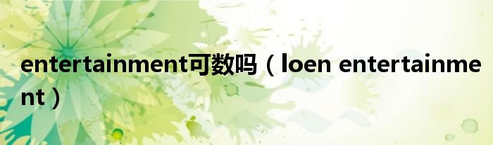 大家好,我是小科,我来为大家解答以上问题。entertainment可数吗,loen entertainment很多人还不知道,现在让我们一起来看看吧!
