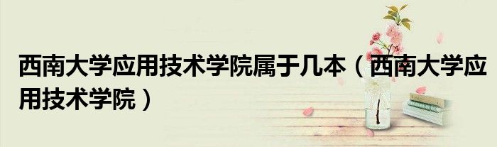 大家好,小联来为大家解答以上的问题。西南大学应用技术学院属于几本,西南大学应用技术学院这个很多人还不知道,现在让我们一起来看看吧!