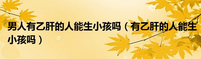 大家好,乐天来为大家解答以下的问题,男人有乙肝的人能生小孩吗,有乙肝的人能生小孩吗很多人还不知道,现在让我们一起来看看吧!