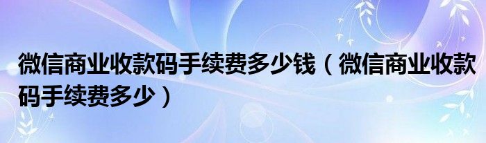 微信商业收款码手续费多少钱(微信商业收款码手续费多少)