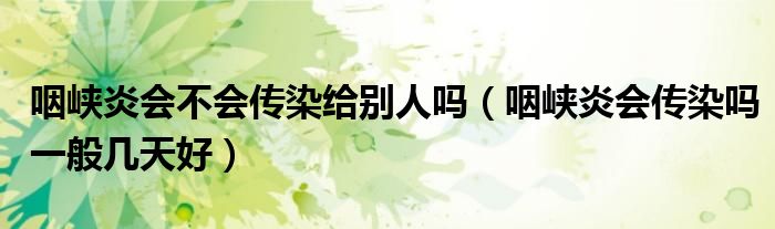 大家好,乐天来为大家解答以下的问题,咽峡炎会不会传染给别人吗,咽峡炎会传染吗一般几天好很多人还不知道,现在让我们一起来看看吧!