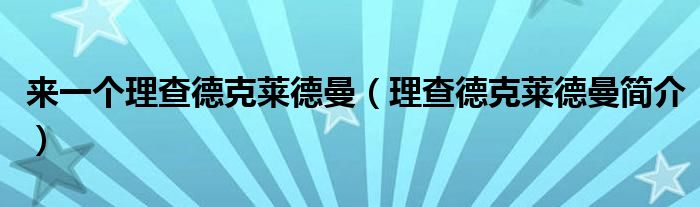 大家好,我是小科,我来为大家解答以上问题。来一个理查德克莱德曼,理查德克莱德曼简介很多人还不知道,现在让我们一起来看看吧!