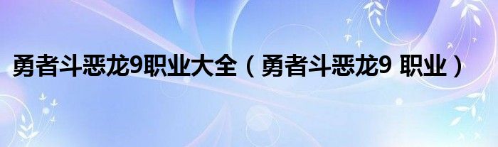 勇者斗恶龙9职业大全(勇者斗恶龙9 职业)