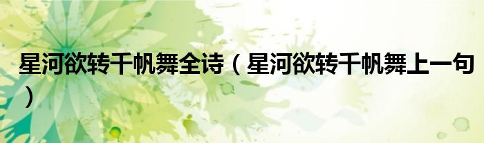 大家好,我是小科,我来为大家解答以上问题。星河欲转千帆舞全诗,星河欲转千帆舞上一句很多人还不知道,现在让我们一起来看看吧!
