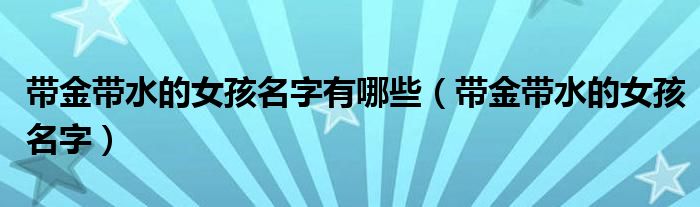大家好,我是小科,我来为大家解答以上问题。带金带水的女孩名字有哪些,带金带水的女孩名字很多人还不知道,现在让我们一起来看看吧!