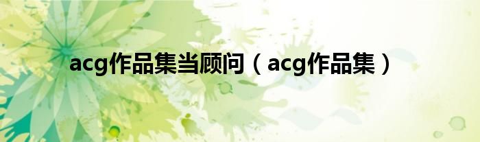 大家好,小联来为大家解答以上的问题。acg作品集当顾问,acg作品集这个很多人还不知道,现在让我们一起来看看吧!