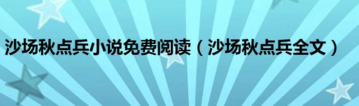 沙场秋点兵小说免费阅读(沙场秋点兵全文)