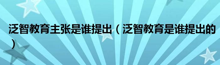 泛智教育主张是谁提出(泛智教育是谁提出的)