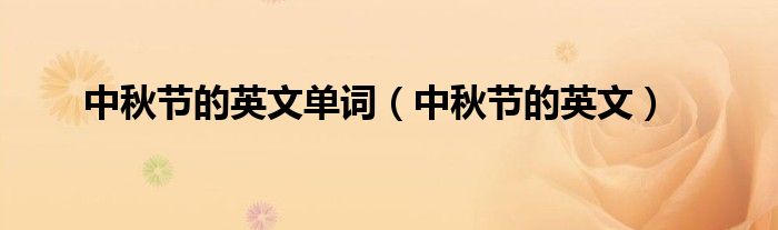 最佳答案大家好,我是小科,我来为大家解答以上问题。中秋节的英文单词,中秋节的英文很多人还不知道,现在让我们一起来看看吧!1、中秋节2、mid-autumn festival3、the Mid-autumn Festival4、中秋节,为每年农历的八月十五。按照中国的农历,八月为秋季的第二个月,古时称为仲秋,因此民间称为中秋。本文...