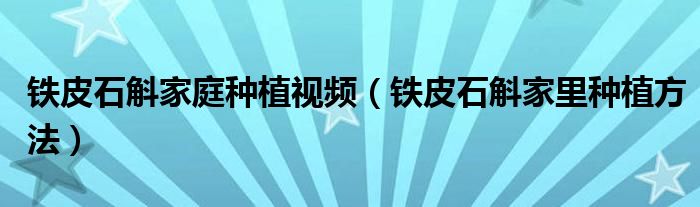 铁皮石斛家庭种植视频(铁皮石斛家里种植方法)