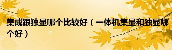 大家好,小晋来为大家解答以下问题,关于集成跟独显哪个比较好,一体机集显和独显哪个好很多人还不知道,今天让我们一起来看看吧!