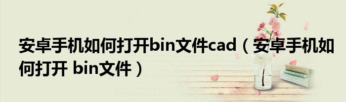 大家好,小晋来为大家解答以下问题,关于安卓手机如何打开bin文件cad,安卓手机如何打开 bin文件很多人还不知道,今天让我们一起来看看吧!