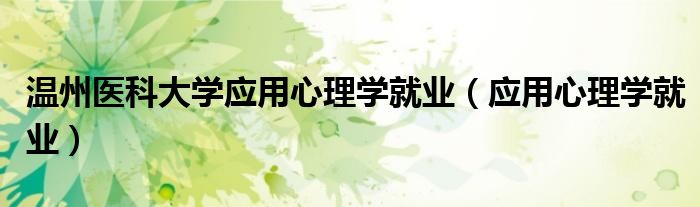 温州医科大学应用心理学就业(应用心理学就业)