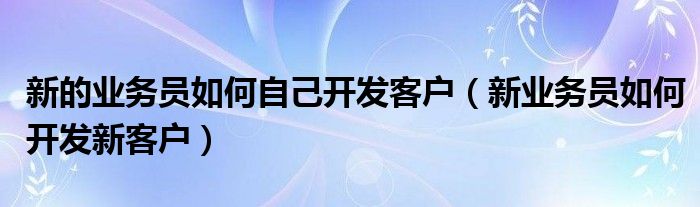 关于新的业务员如何自己开发客户,新业务员如何开发新客户这个很多人还不知道,今天菲菲来为大家解答以上的问题,现在让我们一起来看看吧!