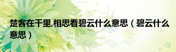 楚客在千里,相思看碧云什么意思(碧云什么意思)