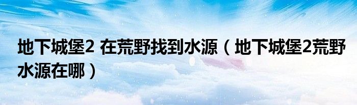 大家好,小晋来为大家解答以下问题,关于地下城堡2 在荒野找到水源,地下城堡2荒野水源在哪很多人还不知道,今天让我们一起来看看吧!