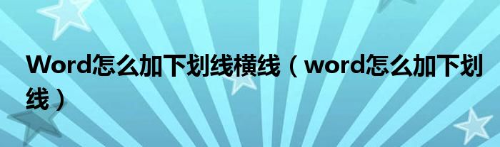 Word怎么加下划线横线(word怎么加下划线)