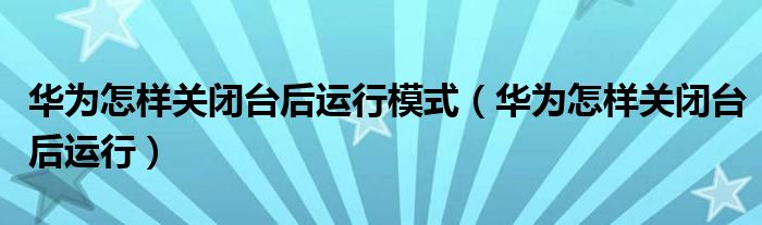 华为怎样关闭台后运行模式(华为怎样关闭台后运行)
