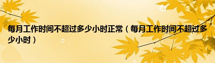 关于每月工作时间不超过多少小时正常,每月工作时间不超过多少小时这个很多人还不知道,今天菲菲来为大家解答以上的问题,现在让我们一起来看看吧!