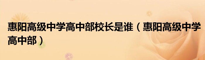 惠阳高级中学高中部校长是谁(惠阳高级中学高中部)