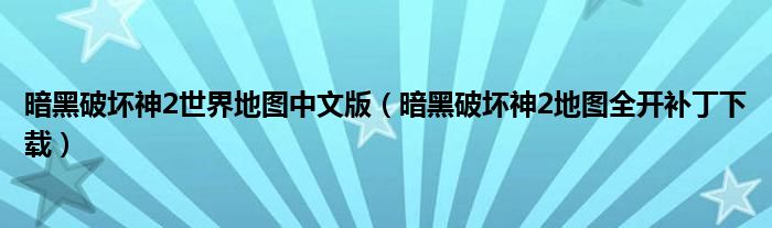 关于暗黑破坏神2世界地图中文版,暗黑破坏神2地图全开补丁下载这个很多人还不知道,今天菲菲来为大家解答以上的问题,现在让我们一起来看看吧!