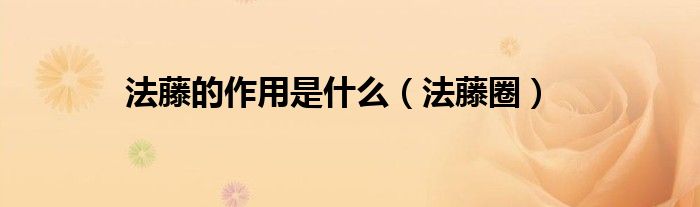 法藤的作用是什么,法藤圈这个很多人还不知道,小飞来为大家解答以上的问题。现在让我们一起来看看吧!