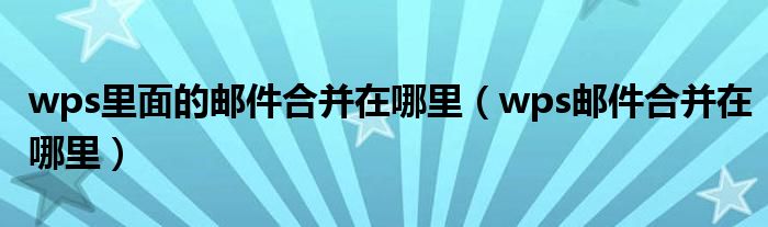 关于wps里面的邮件合并在哪里,wps邮件合并在哪里这个很多人还不知道,今天菲菲来为大家解答以上的问题,现在让我们一起来看看吧!